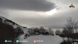 پس از صحبت های اولیه و مشخص شدن مسئولیت ها پیمایش خود را در مسیر برفی آغاز کردیم.