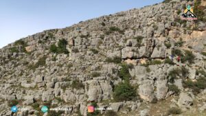 مسیر را ادامه دادیم و از پاکوب سمت چپ جنگل بالای چشمه سجیران به سمت زیر دیواره حرکت کردیم که کمی این مسیر سخت تر و شیب تندی دارد.